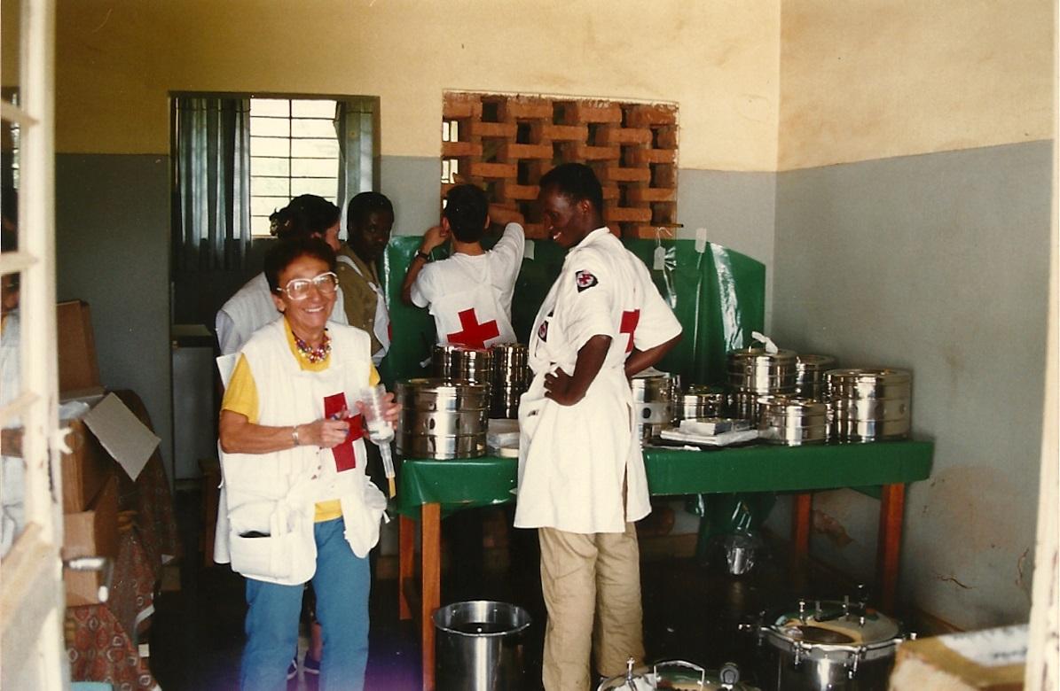 « J’étais déjà en mission au Burundi avec Maurice Meunier, le chirurgien, quand l’avion des présidents rwandais et burundais a été abattu à Kigali le 6 avril 1994. Du coup, MSF nous a rapidement demandé de partir pour Kigali, avec le convoi conjoint MSF-CICR, pour installer un hôpital. Je me rappelle qu’on avait installé le bloc opératoire dans une salle de catéchisme puisque le bâtiment était tenu par des sœurs ! On a eu notre dose de blessés… Et puis un jour on a été évacué. Mais je suis revenue très vite après. On dormait dans un couloir en béton pour être à peu près protégés. Il y avait énormément de blessés. J’en ai des souvenirs cuisants.