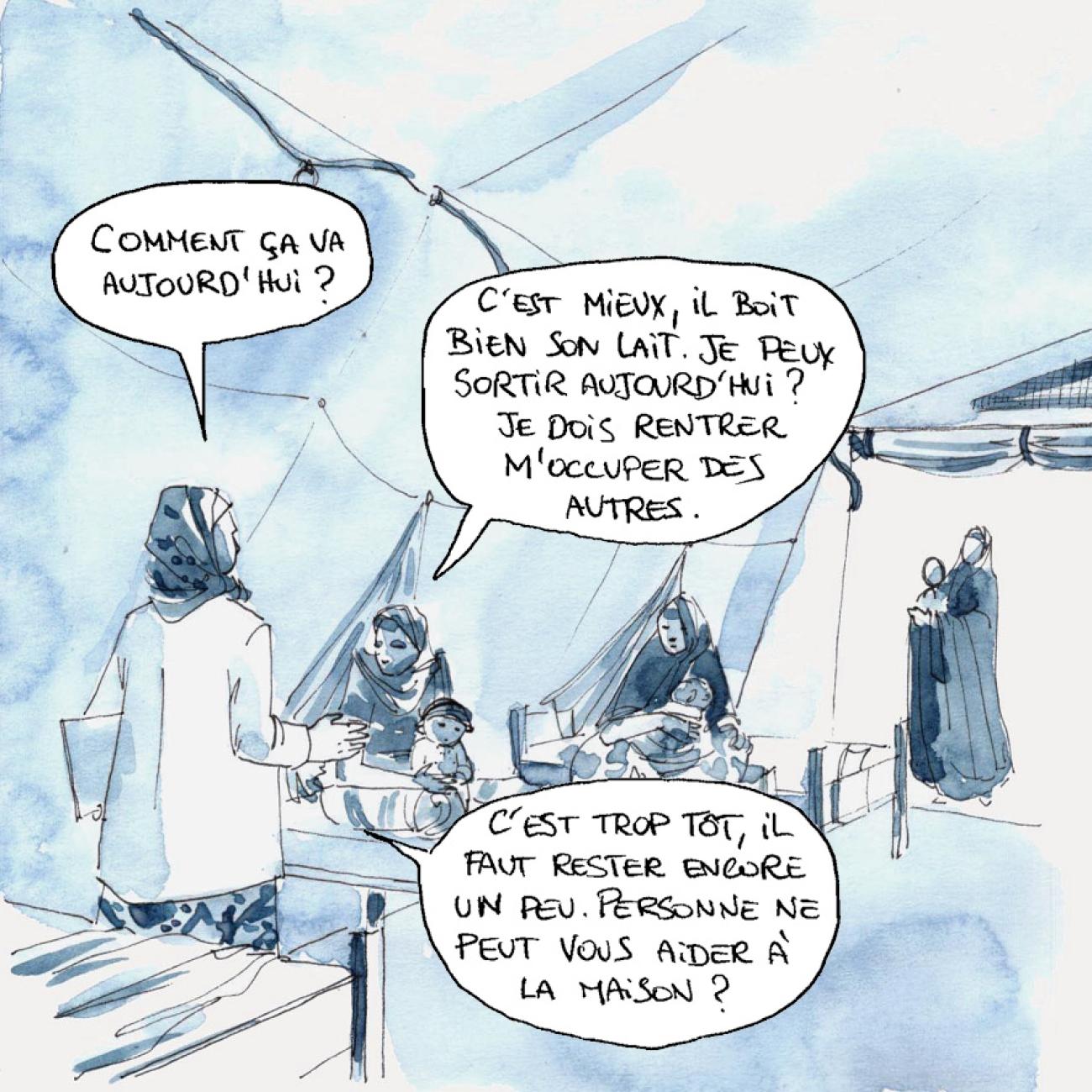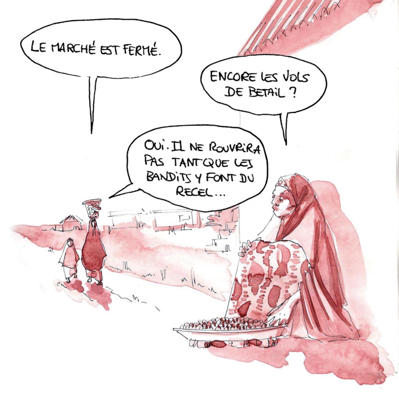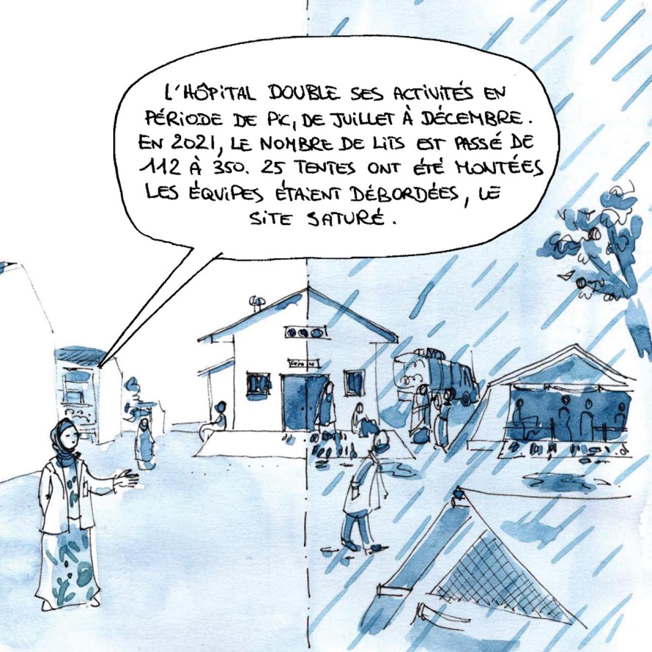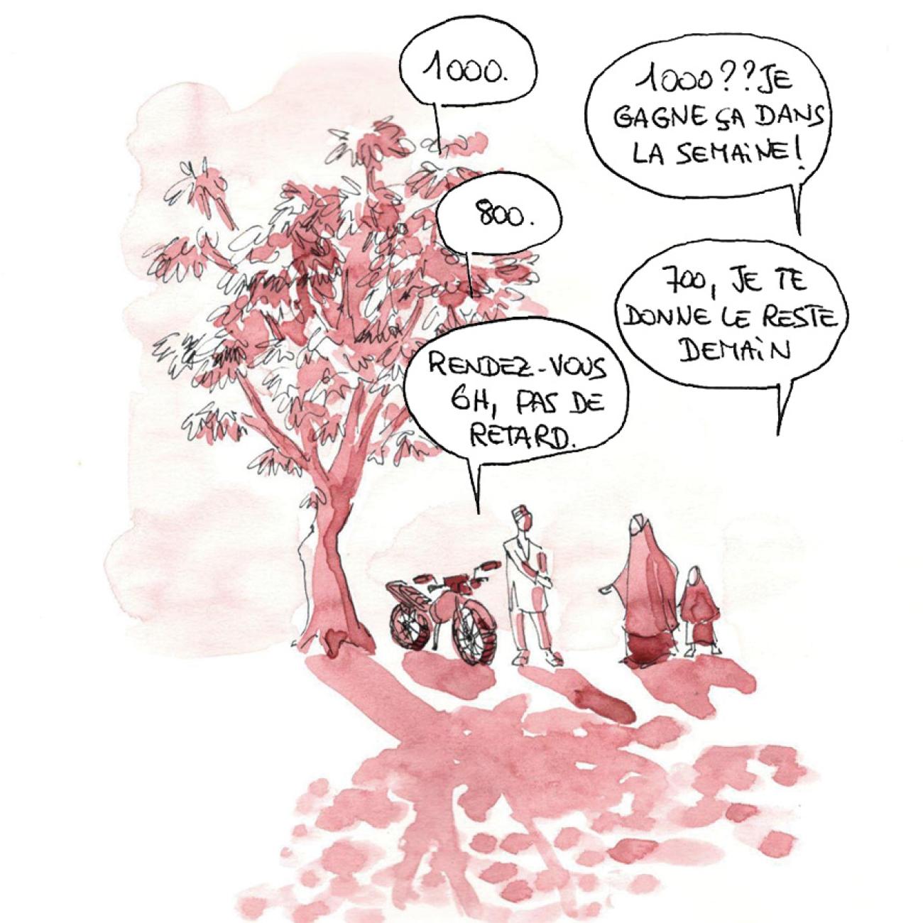 Architecte, Camille Quilichini s’est rendue à Madarounfa, au Niger, dans le cadre des travaux de l’hôpital où sont présentes les équipes de MSF. C’est à cette occasion qu’elle a réalisé cette série de dessins.