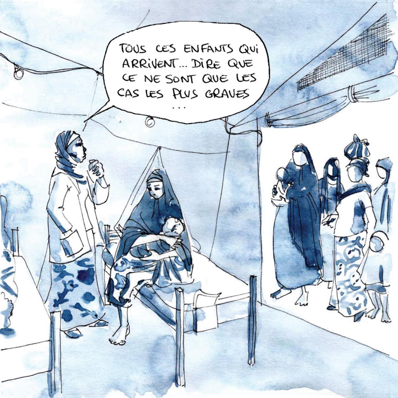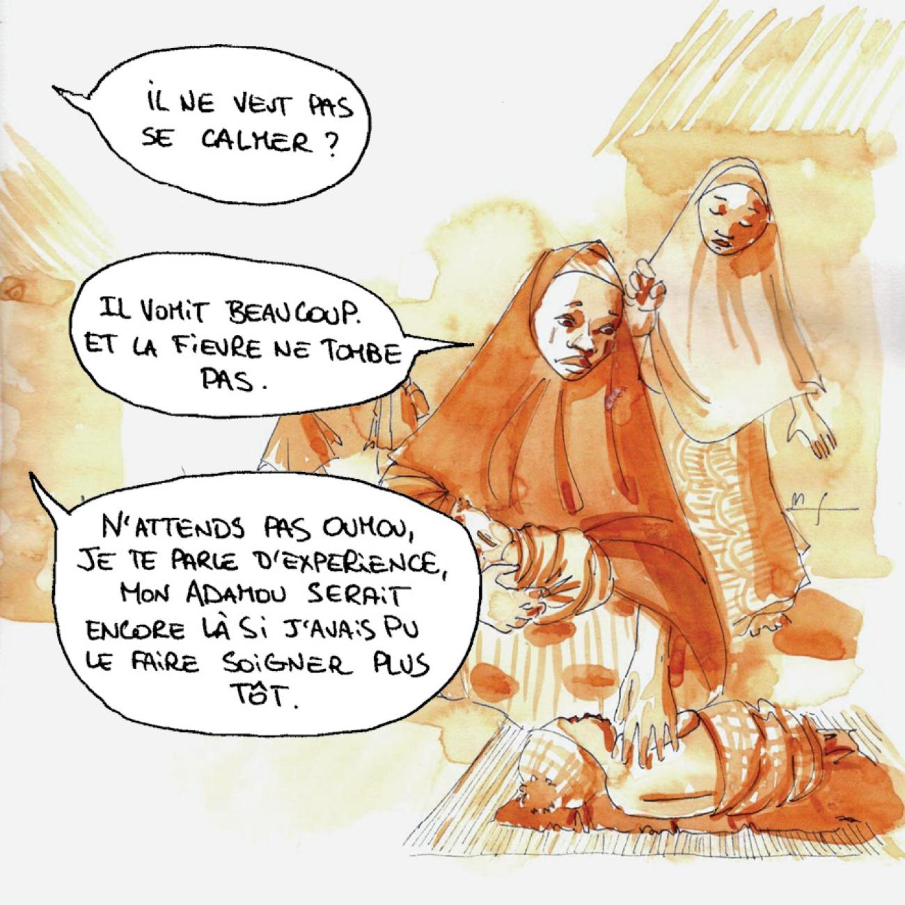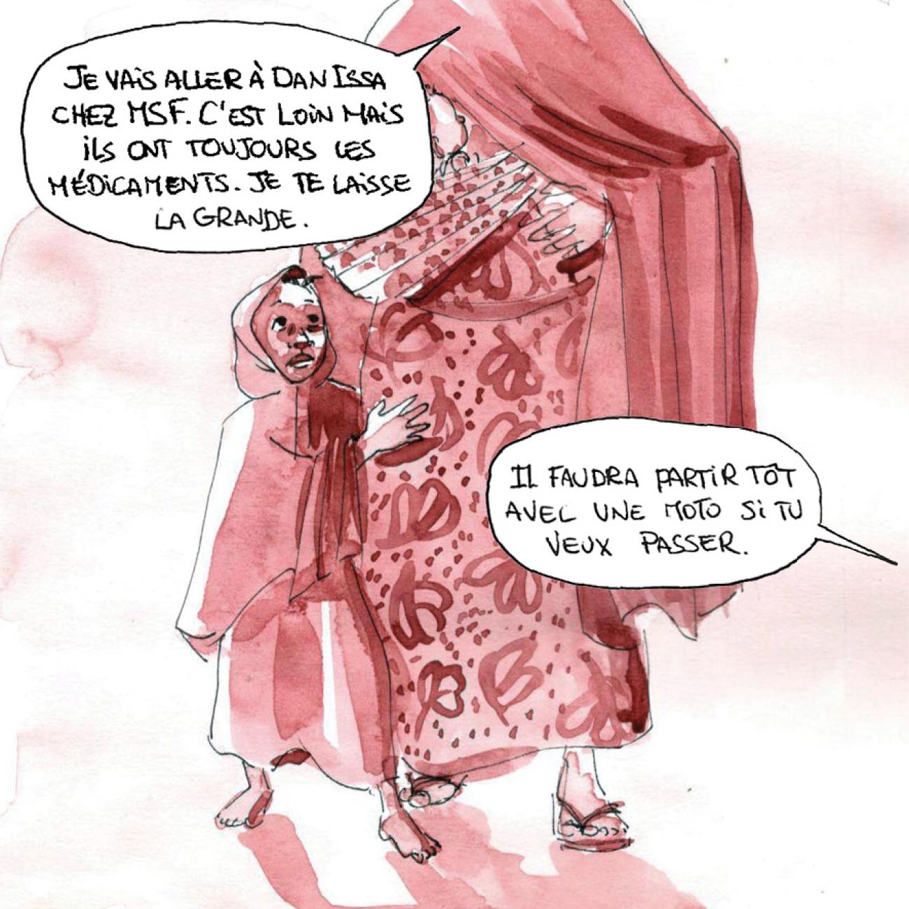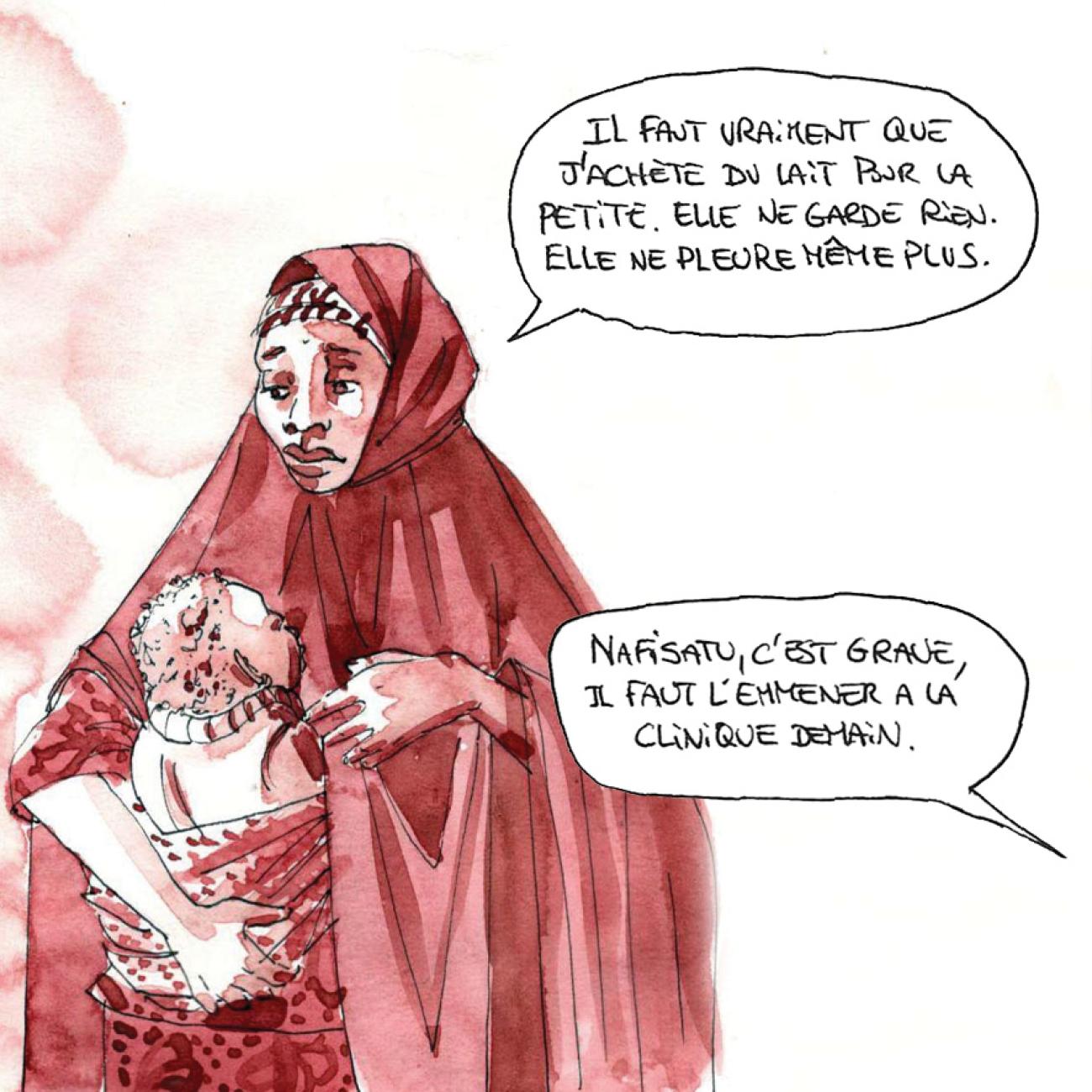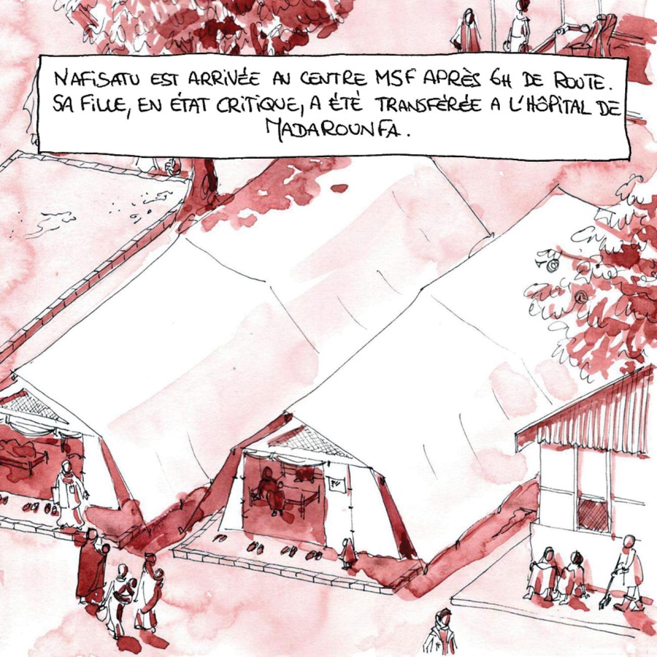 Dans le Sahel, les mois de juin à octobre, lorsque les stocks alimentaires s’épuisent et que les pluies entraînent dans leur sillage moustiques et paludisme, représentent chaque année un passage critique pour les enfants. MSF travaille depuis 2005 au sein de l’hôpital public de Madarounfa, situé dans le sud du Niger, à la frontière avec le Nigeria, où c’est alors l’effervescence. Des dizaines de milliers d’enfants malnutris y affluent avec leur mère après avoir effectué le plus souvent de longs périples. Ce sont les routes de la faim, racontées ici en trois courtes bande-dessinées.