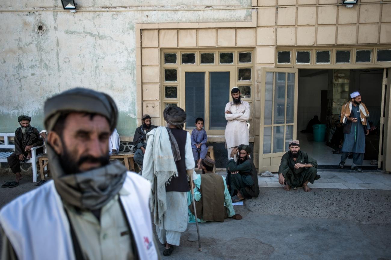 L’entrée de l’hôpital Boost. cet hôpital est géré en partenariat avec le ministère de la Santé Publique afghan.