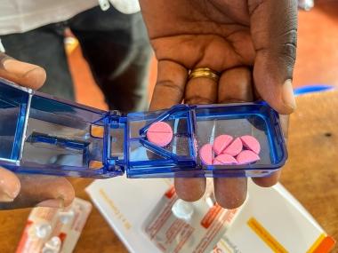 Ce sont des comprimés de sulfadoxine-pyriméthamine, ils s'écrasent en poudre et se mélangent avec de l'eau pour être donnés aux enfants.