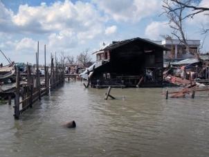 Emmanuel Goue, responsable terrain MSF, revient de Setsan, un village situé à cinq heures de bateau au sud de Bogaley. Il décrit une dévastation totale : « Une énorme vague, durant le cyclone, a tout aplati. 90% des maisons ont été détruites. La population est d’environ 21 000 personnes, dont de nombreux enfants et personnes âgées. Ils vivent au milieu de nulle part, dans la vase. Tout a été détruit et ils n’ont reçu aucune aide pendant un mois.»