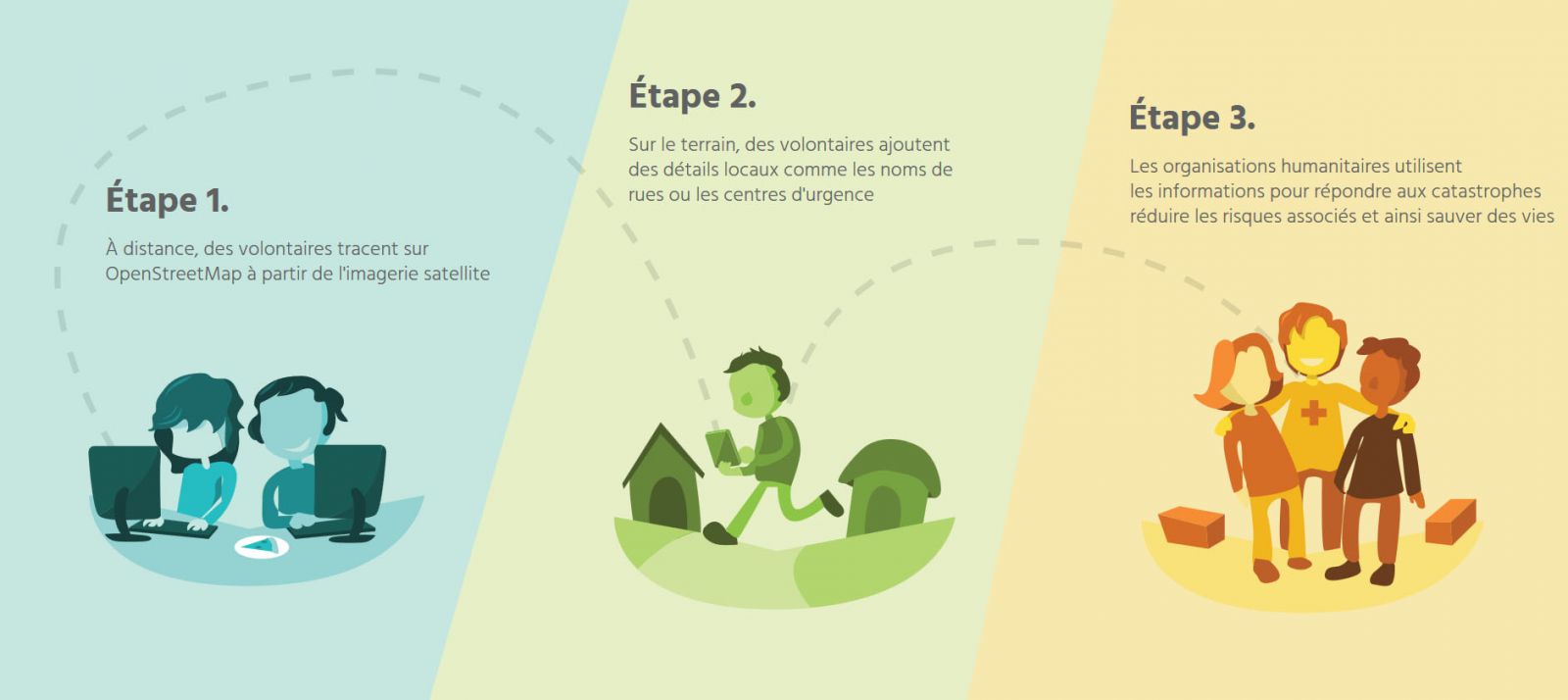 Cette information géographique est aussi importante pour faciliter les prises de décisions, mais la plupart des endroits où se produisent les crises humanitaires sont bien souvent absents des cartes, ce qui peut rendre plus complexe ces prises de décisions.