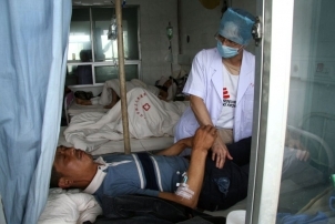 Soutien chirurgical. Une équipe MSF, incluant un chirurgien orthopédique et un médecin, vient en soutien au personnel de l’hôpital de la ville de Guanghan, dans la préfecture de Deyang particulièrement touchée. Cette structure prend en charge les blessés sévères référés par avion de Shifeng, Mianzhu et Beichuan, villes sinistrées voisines.