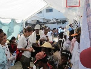 Depuis l'apparition du choléra à Saint-Marc, les équipes MSF ont travaillé à l'hôpital Saint-Nicolas. 450 patients, dont ceux qui ont reçu une solution de réhydratation orale (SRO) ou un traitement par voie intraveineuse, ont été traités dans les deux derniers jours dans des conditions loin d'être idéales.