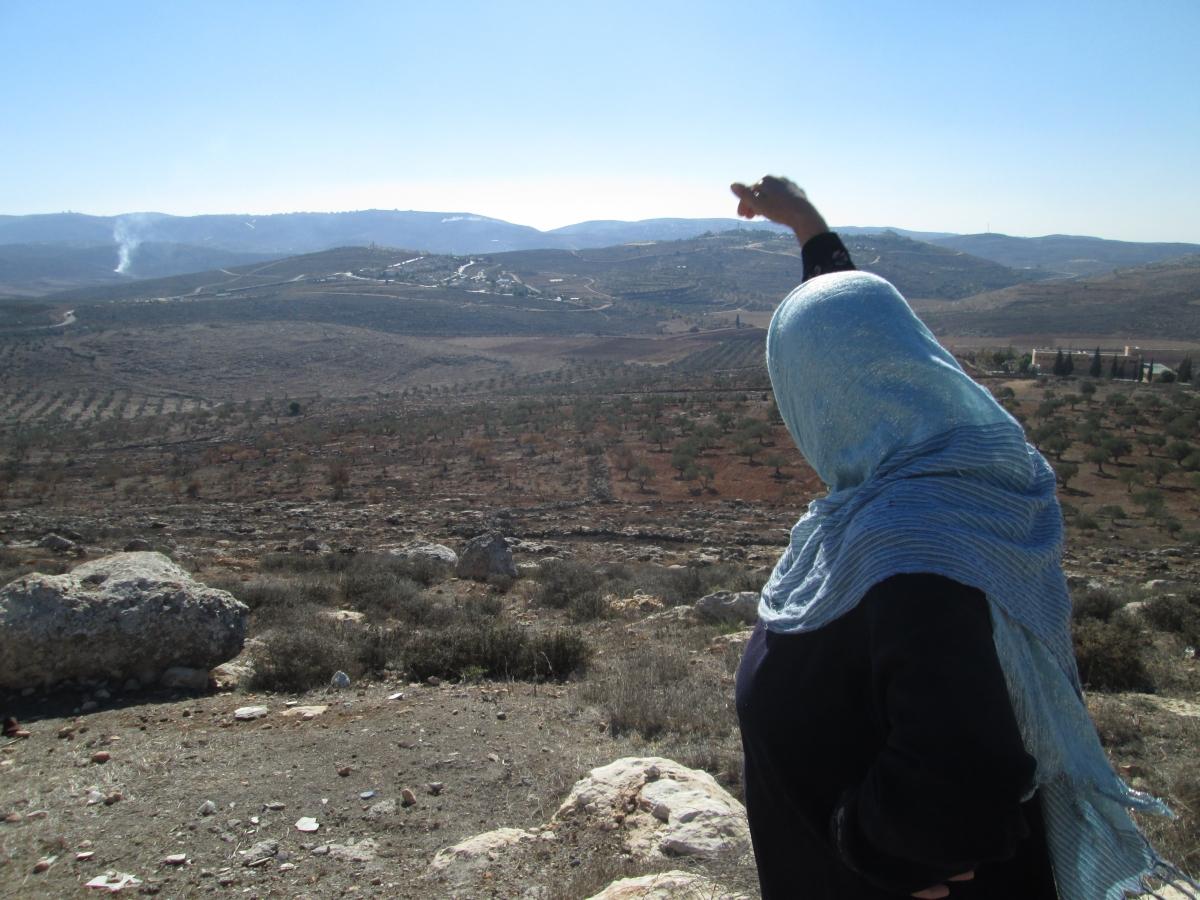 La session terminée, Wissam se rend à Jaloud, un petit village entouré par quatre colonies israéliennes. Elle souhaite rendre visite à une ancienne patiente et à sa fille. Um Fawaz a 56 ans mais en paraît davantage. Elle est née et habite à Jaloud. Les incursions des colons sont fréquentes, ils se rendent dans le village, armés de bâtons, parfois même d’armes à feu, jettent des pierres sur les fenêtres des maisons, entrent chez les habitants et les menacent, ils leur font peur. La violence et les intimidations sont quotidiennes.
