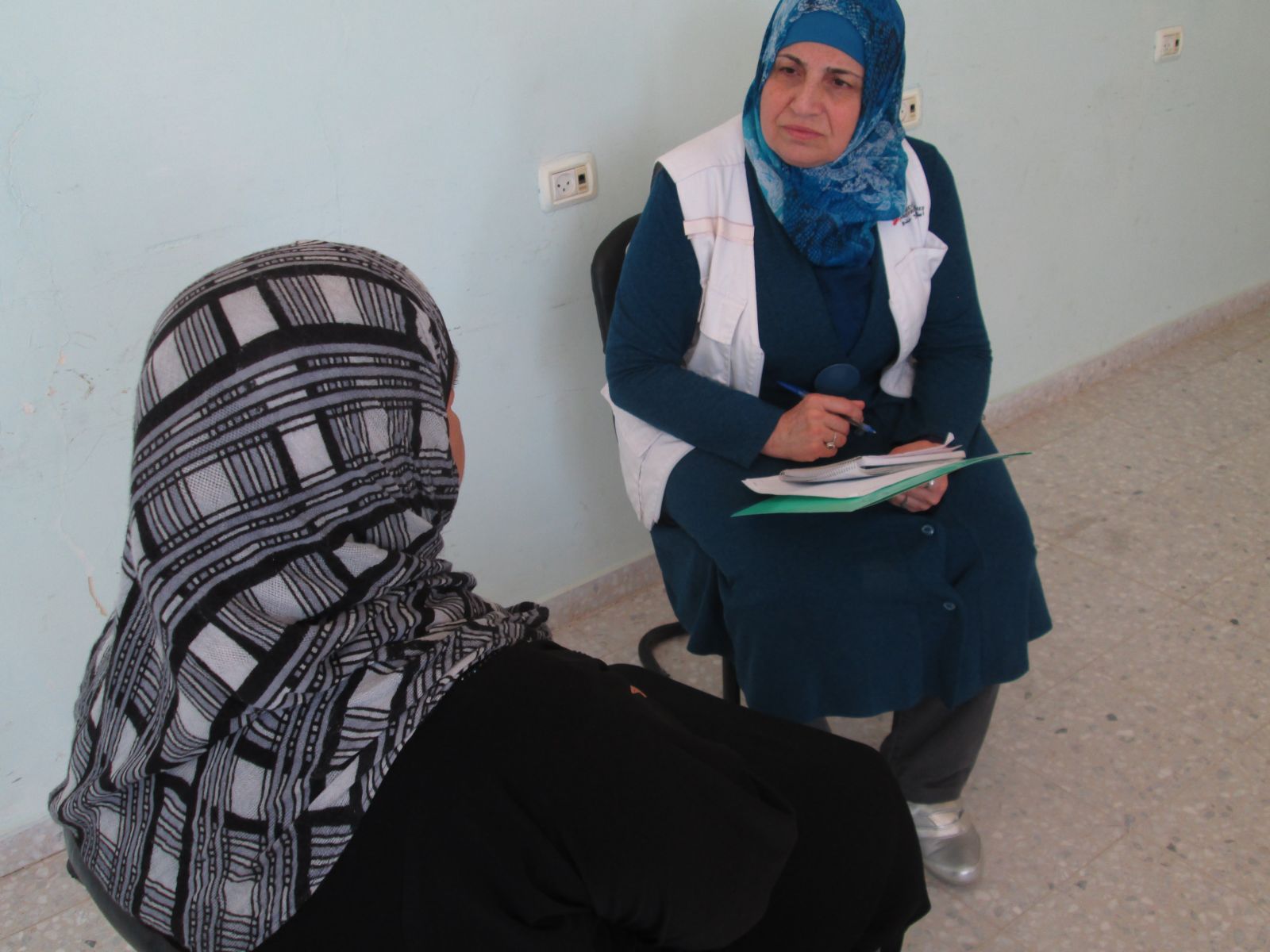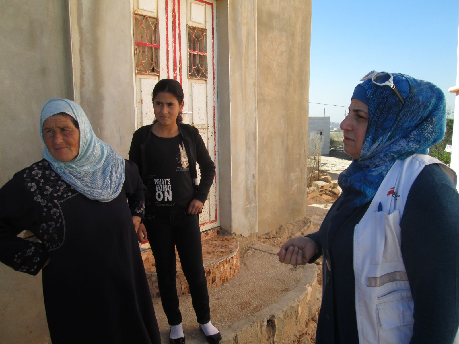 Dans le village de Salem, situé près de Naplouse, Wissam, psychologue MSF, a rendez-vous pour la deuxième fois avec Um Taha. Cette dernière a 48 ans. Son mari est décédé il y a 5 ans, elle vit seule à Salem avec ses 9 enfants. Un ses fils de 28 ans a récemment été arrêté par l’armée israélienne. L’armée a fait irruption la nuit dans sa maison. Ils ont violemment battu Um Taha et l’ont mis en joue avec une arme à feu. Ils ont aussi saccagé la maison en détruisant tout ce qui leur tombait sous la main. Son fils a été condamné à 7 ans de prison. Depuis l’arrestation, Um Taha ne dort plus et fait des cauchemars, elle est devenue dépressive et espère retrouver une vie normale en parlant de ses problèmes à Wissam.