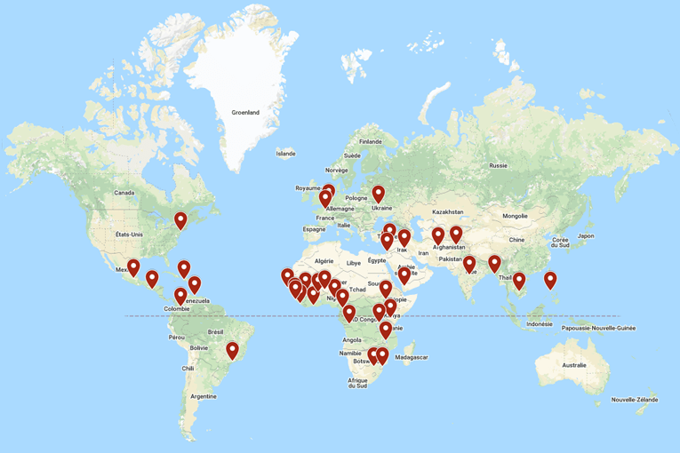 Depuis la fin du mois de mars, les équipes MSF se déploient dans le monde entier pour faire face à la pandémie du nouveau coronavirus. Partout, les projets réguliers que mènent MSF s'adaptent à ce contexte sanitaire inédit, notamment en termes de formations aux mesures de prévention et de contrôle des infections. Sur cette carte figurent les projets opérationnels spécifiques mis en place pour répondre à la Covid-19.