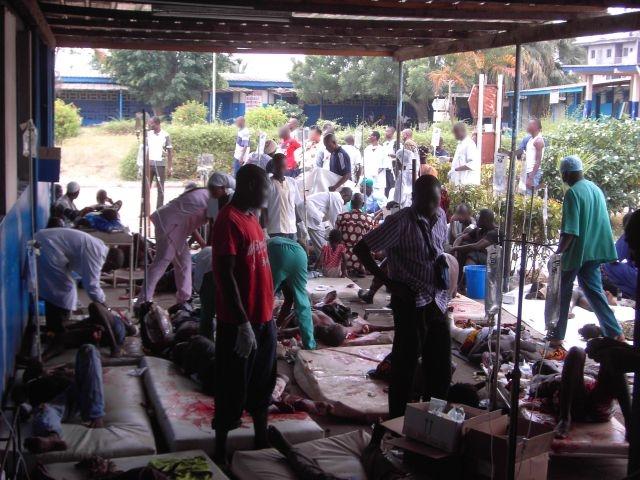 La violence a baissé d’intensité, mais elle n’a pas disparu pour autant. Les pillages et les braquages continuent dans certains quartiers d’Abidjan. Mardi et mercredi, nous recevions toujours entre 15 et 20 blessés. Aujourd’hui, il sont déjà plus d’une vingtaine à s’être présentés à l’hôpital. Les blessures sont principalement dues à des accidents de la route, à des agressions ou à des plaies par une arme à feu. Au-delà de la reprise de la circulation, les accidents sont surtout le fait d’une recrudescence de vols de voitures qui ont mal tourné, dans une atmosphère électrique. Si dans l’hôpital d’Abobo où nous sommes, les capacités d’accueil étaient déjà largement dépassées, elles sont désormais insuffisantes pour héberger les blessés. Initialement, l’hôpital disposait d’une vingtaine de lits. Et on compte aujourd’hui 90 patients hospitalisés !