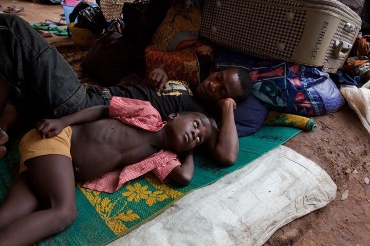 Quand il fait noir, le marché, la zone des cuisines et même le terrain devant le dispensaire MSF deviennent un dortoir géant, débordant de familles qui dorment sur un morceau de tissu, sans rien d'autre que les étoiles pour s'abriter. Encore faut-il que les nuits soient clémentes. La dernière semaine, de fortes pluies ont touché la région et ont semé la pagaille au milieu de la nuit, les populations cherchant à se couvrir, à creuser de nouvelles tranchées pour recueillir l'eau de pluie, et à essayer de balayer l'eau et la boue pour se coucher et grappiller quelques heures de sommeil.