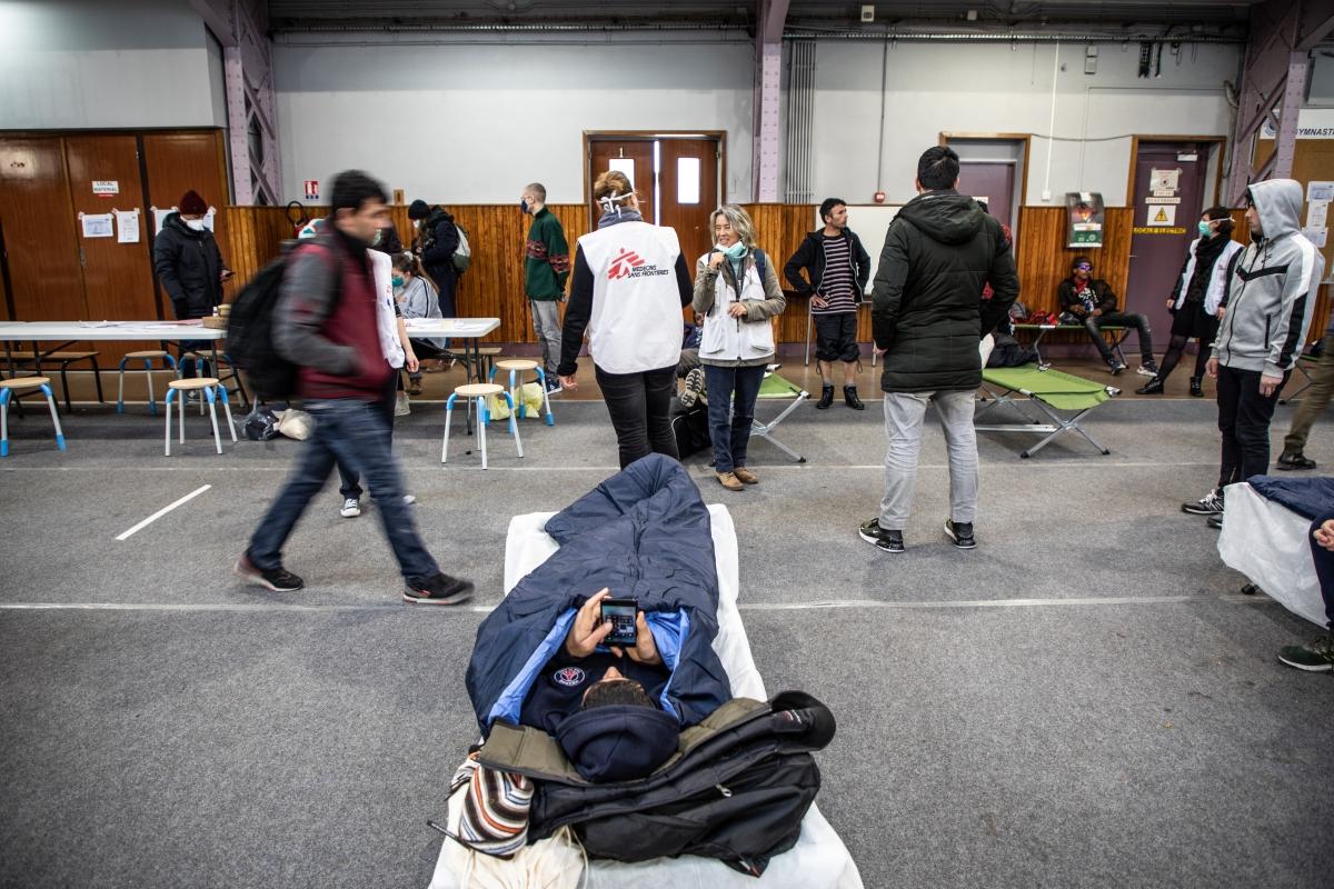 Les équipes MSF accueillent des personnes évacuées du camp. Paris, 24 mars 2020.