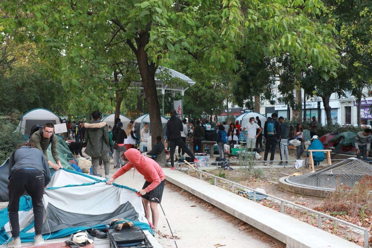 Soutenus par le Comité pour la santé des exilé.e.s (Comede), Médecins Sans Frontières (MSF), les Midis du MIE, TIMMY – Soutien aux Mineurs Exilés et Utopia 56, ces adolescents au parcours de vie souvent difficile ont cohabité durant plus d’un mois dans ce campement aux faux airs de colonie de vacances du 11ème arrondissement pour faire valoir leur droit à une prise en charge par les Conseils Départementaux, qui les avaient abandonnés à une vie d’errance à la rue. En recours devant le juge des enfants pour faire reconnaitre leur situation après une première évaluation défavorable, ils dépendaient de l’engagement de bénévoles et d’associations pour se nourrir, se soigner, et tout simplement survivre.