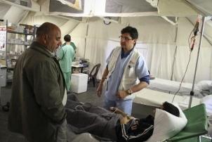 Comme Bilal, d'autres patients ont reçu des soins chirurgicaux de reprise prodigués par les équipes chirurgicales de MSF installées sous des tentes comprenant deux blocs opératoires, une unité de soins intensifs de douze lits et une unité de soins postopératoires.