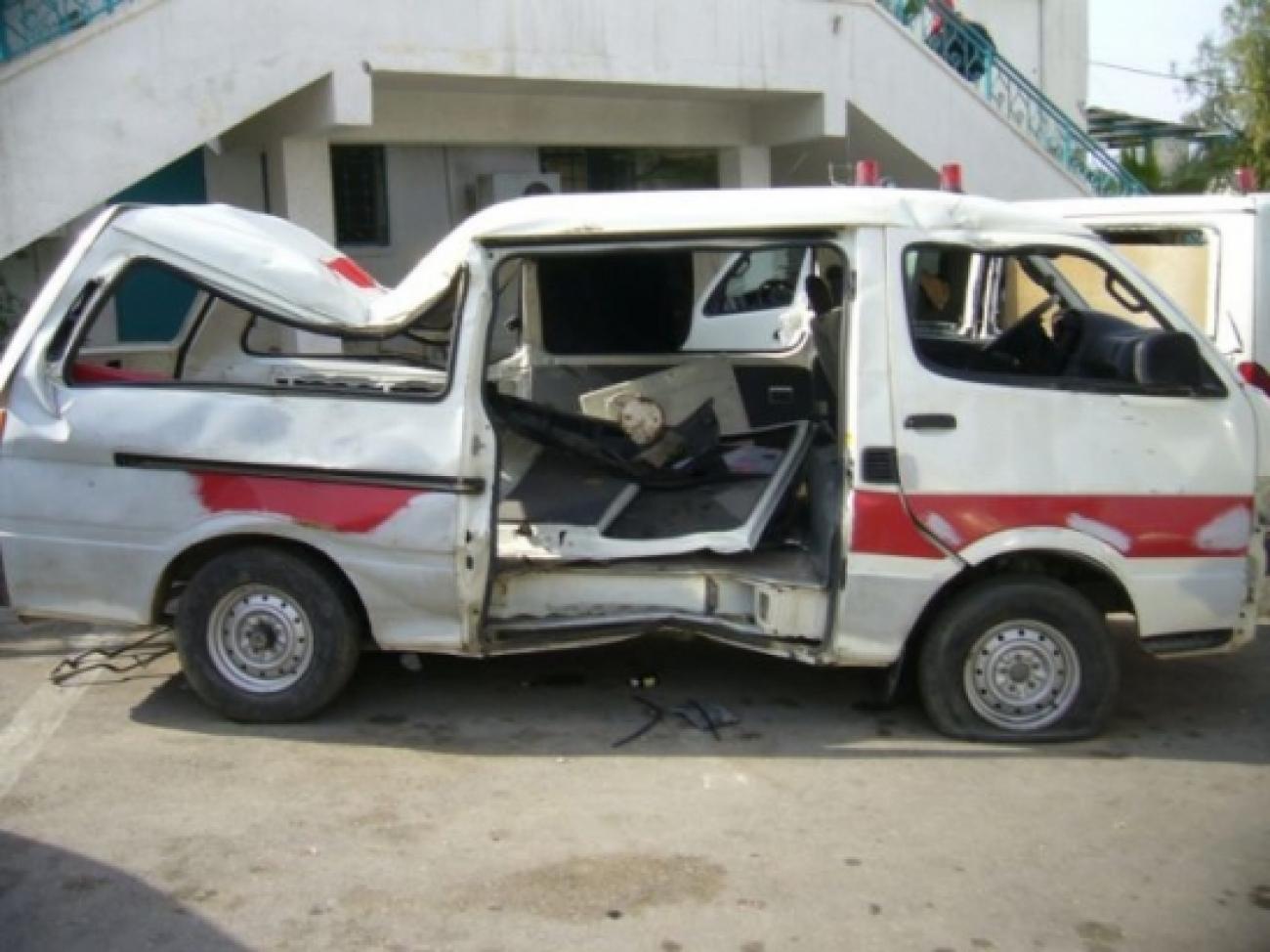 Du fait de la violence du conflit et de l'insécurité, l'espace humanitaire n'est pas respecté et les acteurs de l'aide se trouvent parfois dans l'impossibilité de porter secours. Des hôpitaux, des ambulances, des convois d'ONG sont même la cible de tirs et/ou de bombardements.Ci-dessus : Une ambulance bombardée