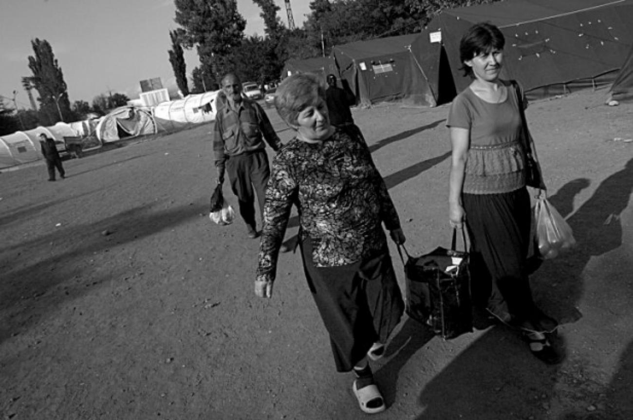 Ci dessus : scène de vie au camp de déplacés d'Akhalibakhi (Gori), septembre 2008.