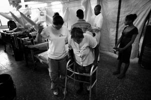 « Renvoyer chez eux des patients dans ces conditions médicales - et de vie en général - n'est tout simplement pas envisageable pour nous », déclare le docteur Michel Janssens, directeur de l'hôpital MSF du quartier de Saint Louis à Port-au-Prince. L'hôpital, situé sur un ancien terrain de football, restera sur pied pour encore au moins un an.