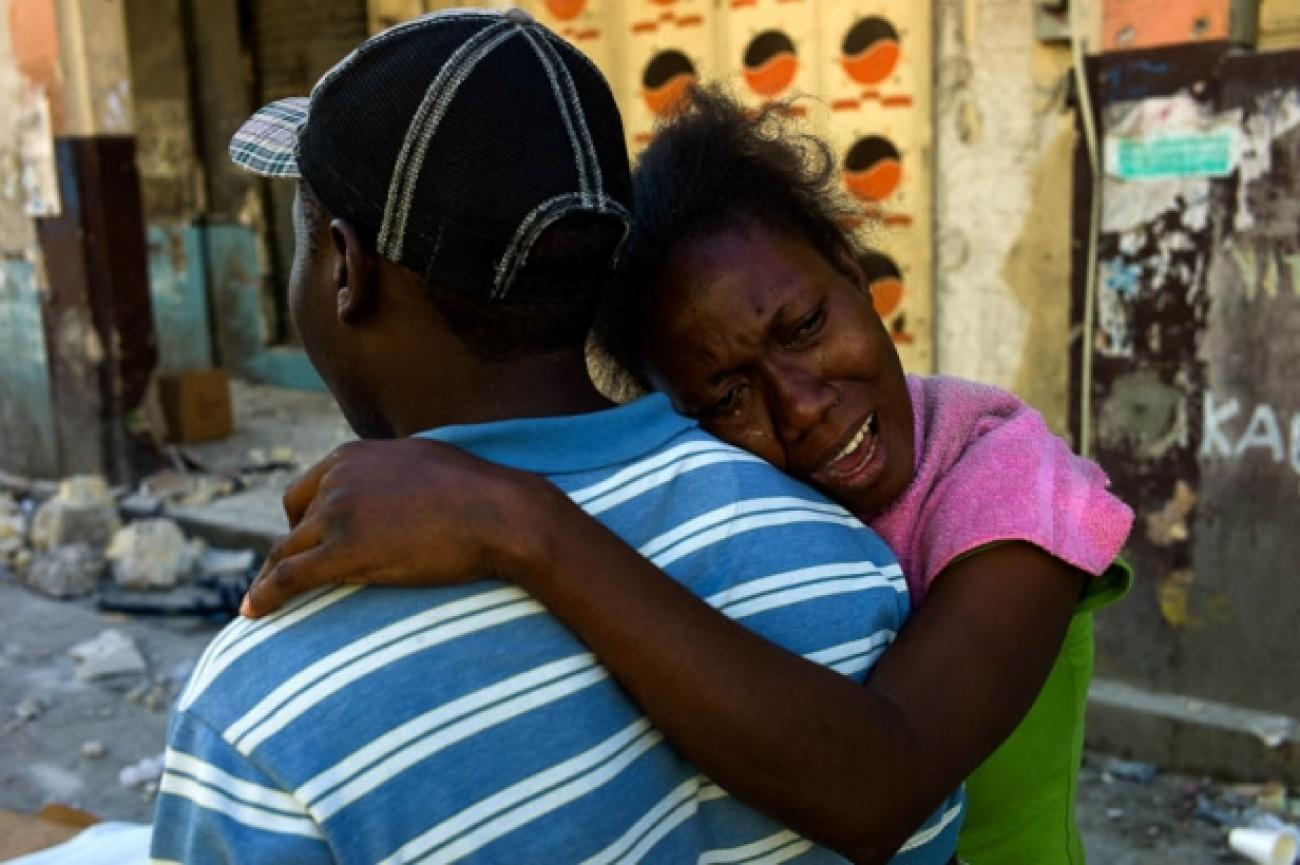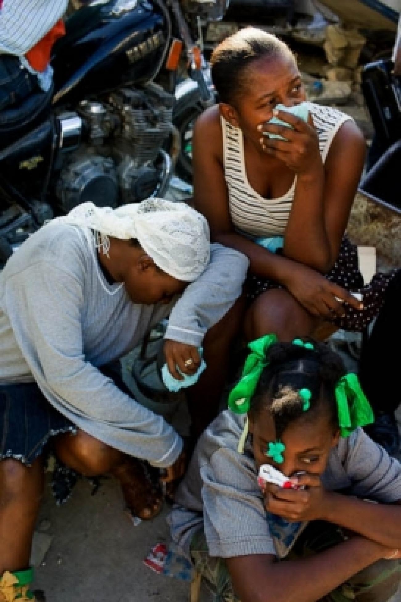 Des survivants dans le centre ville de Port-au-Prince particulièrement touché par le tremblement de terre.