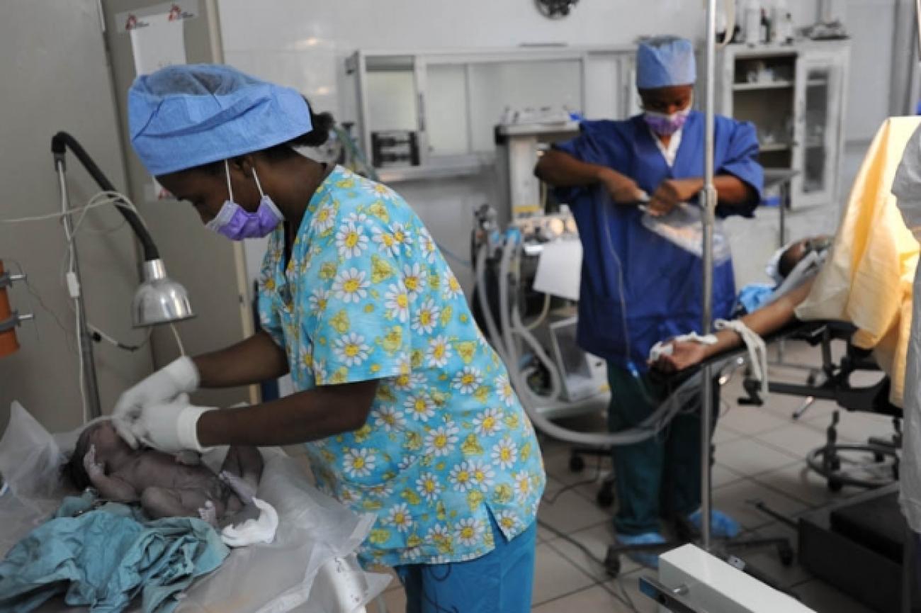 A l'hôpital Choscal de MSF à Port-au-Prince, une petite fille vient de naître. Pour la mettre au monde, sa maman a dû subir une césarienne en urgence.