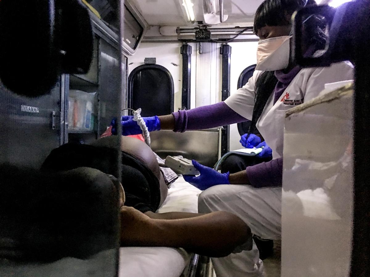 En avril, 551 appels pour l'ambulance MSF et plus de 2 300 admissions aux urgences ont été enregistrés : des chiffres record depuis le début de l'année. Nos activités se sont élargies pour tenter de combler la réduction de l'offre de soins causée par l'épidémie : entre mars et avril par exemple, le nombre de trajets en ambulance pour des urgences obstétricales a plus que doublé (de 98 à 209) car les femmes enceintes peinent de plus en plus à trouver des moyens de transport la nuit.