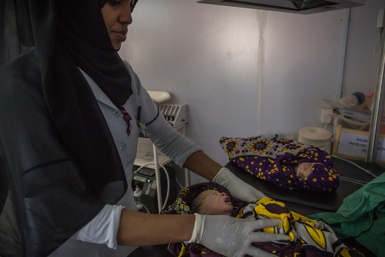 En attendant, MSF a mis en place des infrastructures provisoires afin de pouvoir déjà commencer à dispenser des soins obstétriques aux femmes enceintes. Ces douze conteneurs abritent 30 lits, une salle d’accouchement, une banque de sang et un bloc opératoire destiné à traiter les urgences obstétriques.