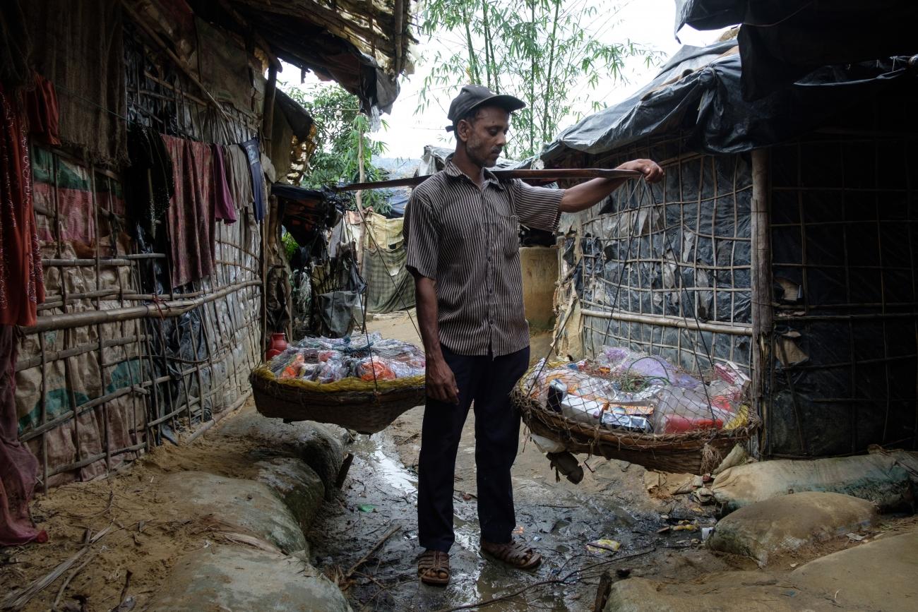 « En Birmanie, je suis allé une fois à l’hôpital pour soigner les grosseurs dans mon dos et sur la gorge. Mais le personnel a refusé de me soigner parce que je n’avais pas suffisamment d’argent. Je souffre, mais il n’y a rien que je puisse faire. Je suis arrivé il y a trois jours au Bangladesh avec mes six filles et ma femme. Je suis âgé et en mauvaise santé. J’ai du mal à marcher parce que mon pied gauche me fait mal, donc nous avons mis beaucoup de temps à arriver jusqu’ici. Dans mon village, il y a trois avant-postes militaires, un à l’est et deux à l’ouest.