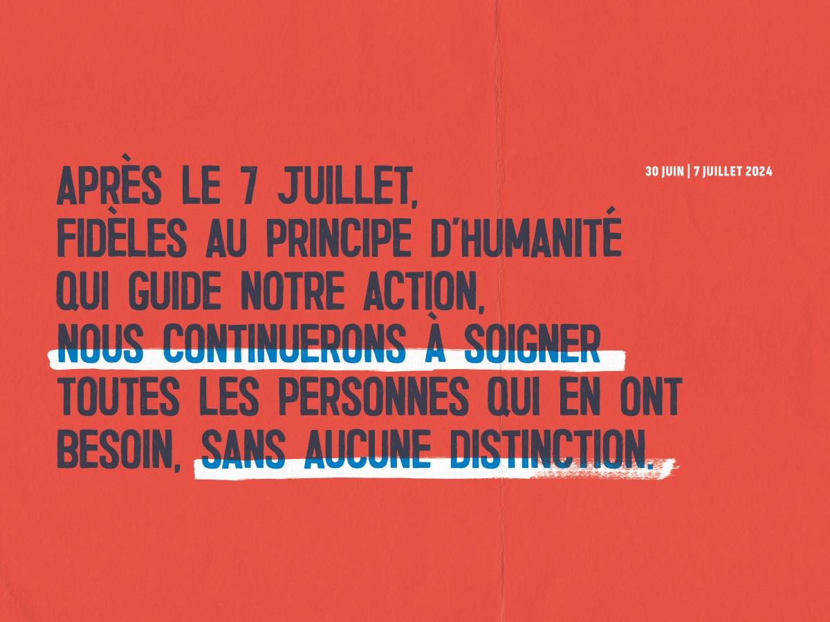 Après le 7 juillet, fidèles au principe d’humanité qui guide notre action, nous continuerons à soigner toutes les personnes qui en ont besoin, sans aucune distinction.