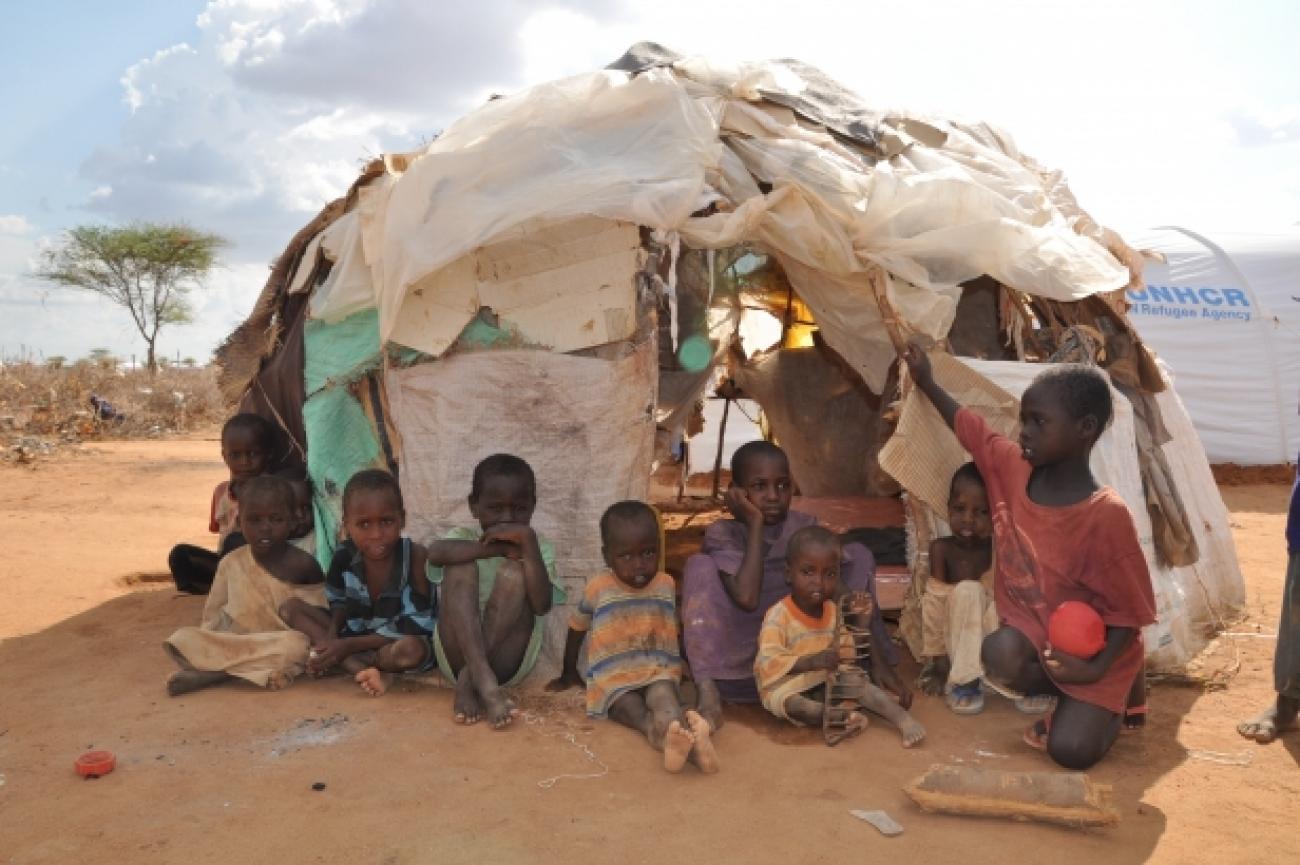 Dans le désert au nord-est du Kenya, les nouveaux réfugiés arrivés de Somalie vivent dans des abris précaires faits de bâtons, de cordes et de bâches en plastique.