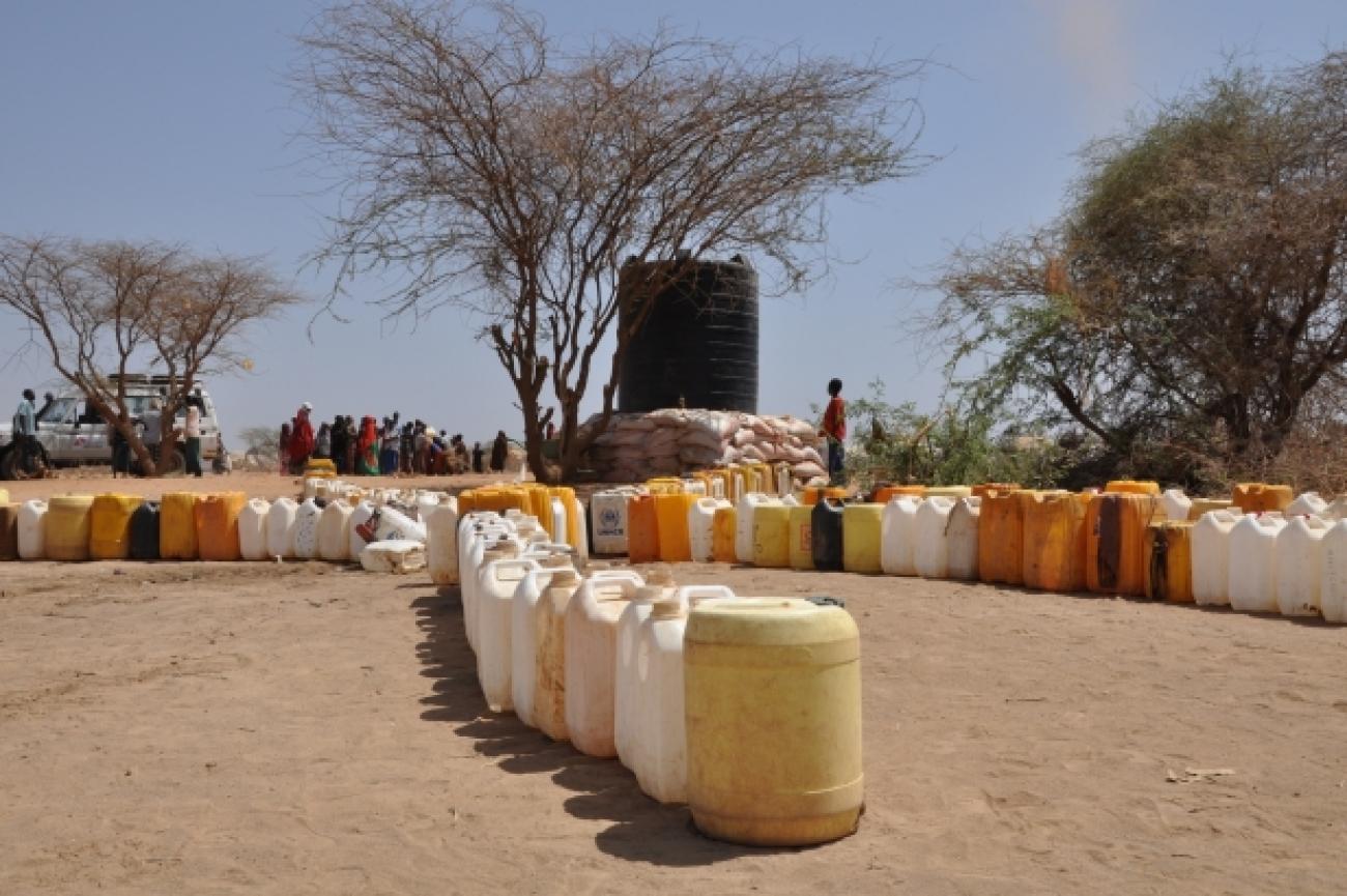 L'eau dans les camps est pompée sous le désert. Cependant il n'y a jamais assez d'eau et les réfugiés doivent faire la queue des heures durant afin de remplir des jerrycans.