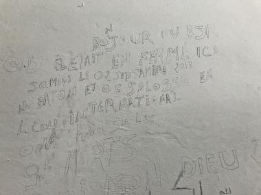 Un graffiti dans le centre écrit par quelqu’un qui ne veut pas que ce tragique événement ne tombe dans le silence et l’oubli.