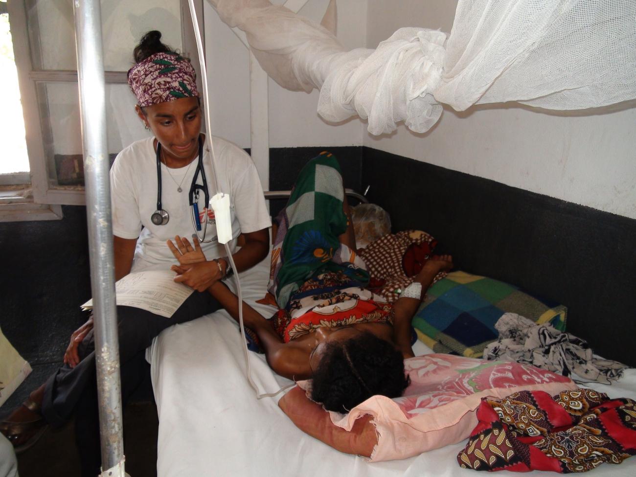 Le service des urgences et pansements. Naina, la médecin tente de poser une sonde à ce jeune enfant tombé dans le coma.