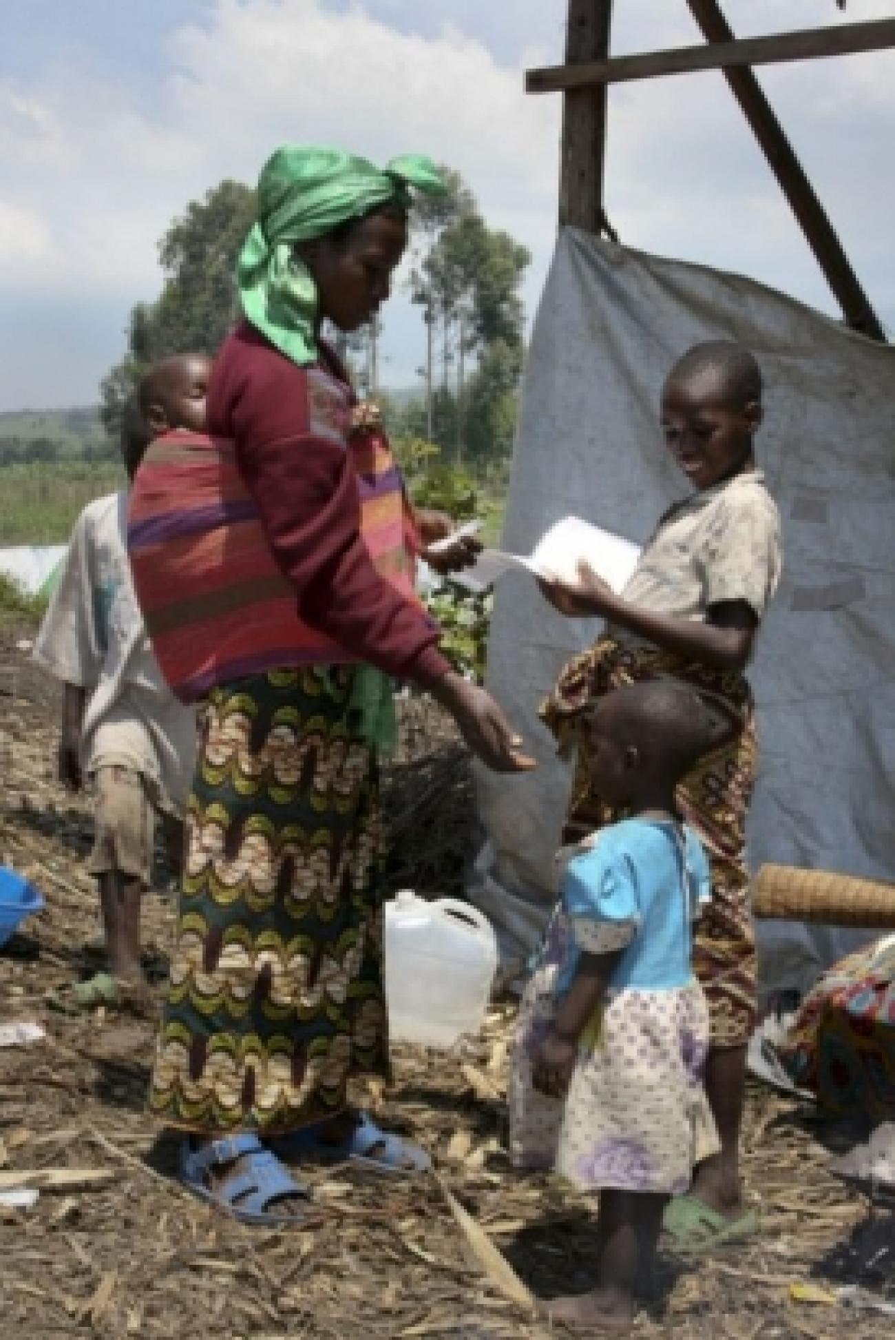 Sa fille de 6 ans souffre de kwashiorkor, une forme grave de malnutrition. C'est la deuxième fois qu'elle souffre de malnutrition, elle avait déjà été soignée à Rugari. « Là-bas, nous ne recevions pas suffisamment à manger. Les rations qu'ils distribuaient étaient censées nourrir ma famille pendant un mois, mais au bout de deux semaines il ne nous restait presque plus rien », explique sa mère. A Kibati, la plupart n'ont pas de quoi s'acheter à manger. « Depuis cinq jours, nous n'avons rien mangé, à part un peu de jus de banane. Ici, je n'ai pas d'argent et pas de travail. »