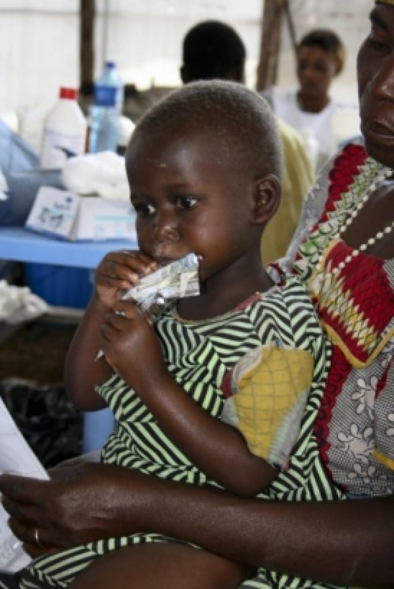 « Ma fille tousse depuis plusieurs jours, c'est pour ça que je suis venue à la consultation. » L'équipe de MSF a prescrit des médicaments à la petite S., mais craint qu'elle ne récupère pas rapidement tant qu'elle dormira dehors. « Nous sommes présents à Kibati tous les jours, alors elle doit revenir pour une nouvelle consultation bientôt », explique Mumuza.