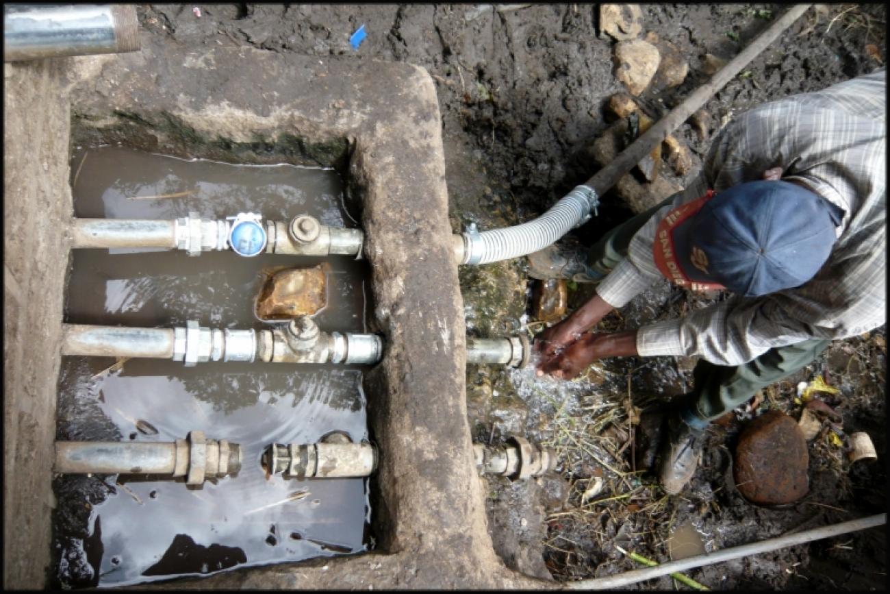 © William Martin/MSF - A Montaragon, l'approvisionnement en eau était insuffisant. L'équipe mobile de MSF a donc effectué des branchements pour que les personnes déplacées aient accès à l'eau, mais aussi pour que les habitants de Montaragon soient normalement alimentés.
