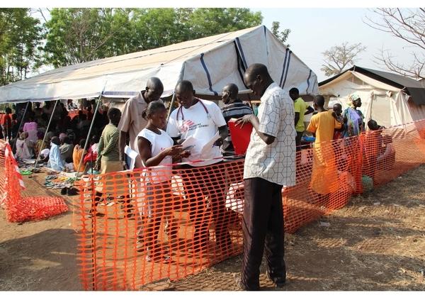 Le Haut Commissariat des Nations Unies aux réfugiés a fourni des tentes et, pour le moment, les réfugiés ont de quoi manger. Ils ont de l'eau potable. MSF apporte de l'eau par camions du Nil plusieurs fois par jour, la traite à l'intérieur du camp pour la rendre potable avant de la distribuer aux réfugiés.