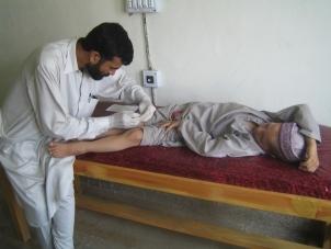Nous traitons aussi de nombreux enfants, comme Basit, un petit garçon de dix ans. Accompagné par sa mère, il est arrivé au centre de premiers soins de Darban, situé dans l’Est de la province, ou nous traitions déjà ses deux frères. Son genou était gonflé et le démangeait, et comme ses frères, il souffre d’une maladie courante dans la région : la leishmaniose.