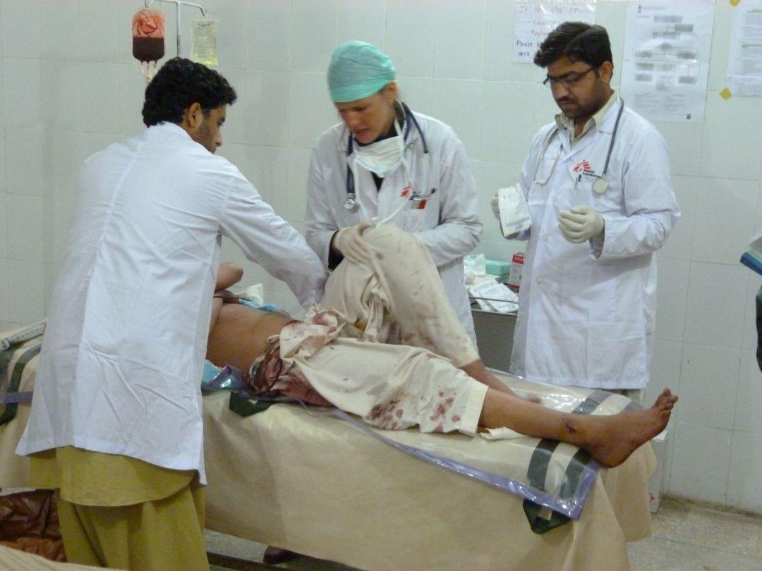 Prise en charge d'une victime d'explosion aux urgences MSF de l'hôpital d'Hangu  Février 2011