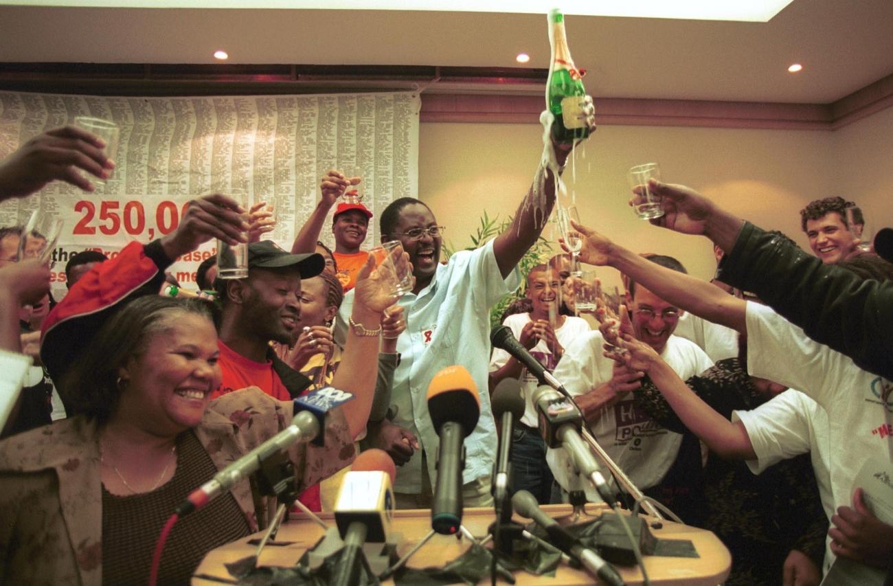 En 1998, une coalition de 42 groupes pharmaceutiques a assigné le gouvernement en justice, après que ce dernier a tenté d’amender les lois sur les brevets pour permettre l’importation de médicaments génériques abordables, principalement d’antibiotiques. L’affaire - Big Pharma contre Nelson Mandela - a duré trois ans, jusqu’en mars 2001. Quelques activistes de la lutte contre le VIH se sont mobilisés pour soutenir le gouvernement, espérant qu’une victoire garantirait des soins à tous les Sud-Africains atteints du virus. Le 19 avril, au vu de l’image désastreuse que leur donnait cette affaire, Big Pharma a annoncé son retrait du procès ; la foule a exulté.