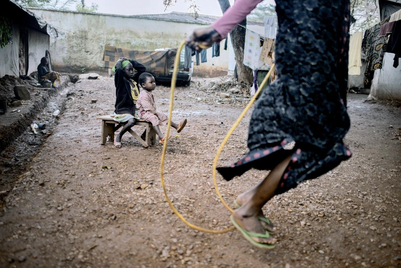 Des enfants jouent dans le quartier musulman de PK5, dans le camp pour déplacés de la Mosquée Centrale de Bangui.