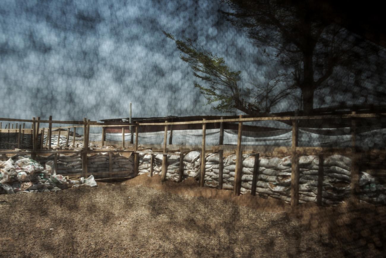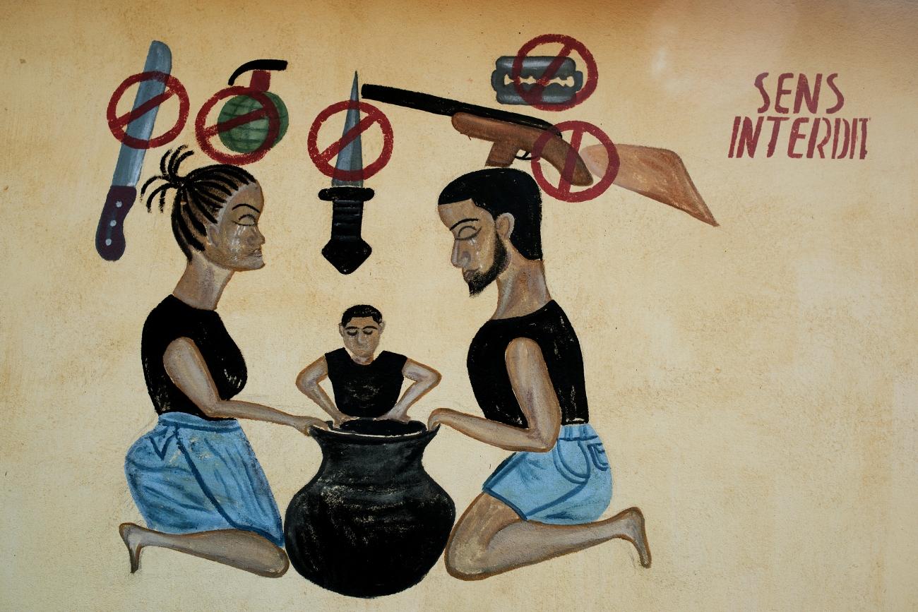 Un signe peint dans le camp de personnes déplacées à M’Poko, Bangui. De nouvelles éruptions de violence intercommunale depuis septembre maintiennent la population sur le qui-vive, et beaucoup craignent une montée de tension à n’importe quel moment.