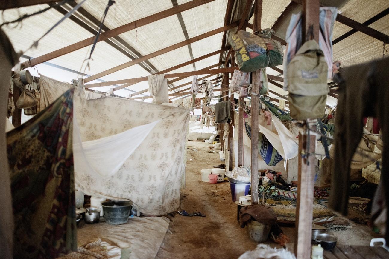 Le camp de personnes déplacées à M’Poko, Bangui. La détérioration des conditions de sécurité a détruit les espoirs des 450 000 personnes déplacées à l’intérieur du pays – ainsi qu’un nombre équivalent de réfugiés ayant fui les pays voisins – de rentrer bientôt chez elles.