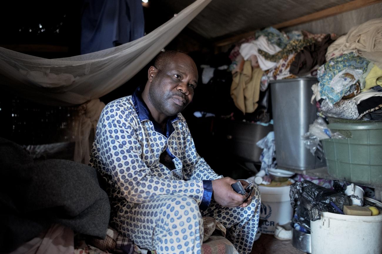 Jacob Malika, ancien garde de sécurité : « Mon fils s’est brisé plusieurs membres, alors qu’il fuyait une attaque dans notre quartier lors des dernières violences. MSF l’a soigné et il est à présent en bonne santé. » Lui et sa famille vivent dans le camp de M’Poko depuis deux ans. Pour leur permettre de vivre, la femme de Jacob vend des donuts et du café dans le camp.