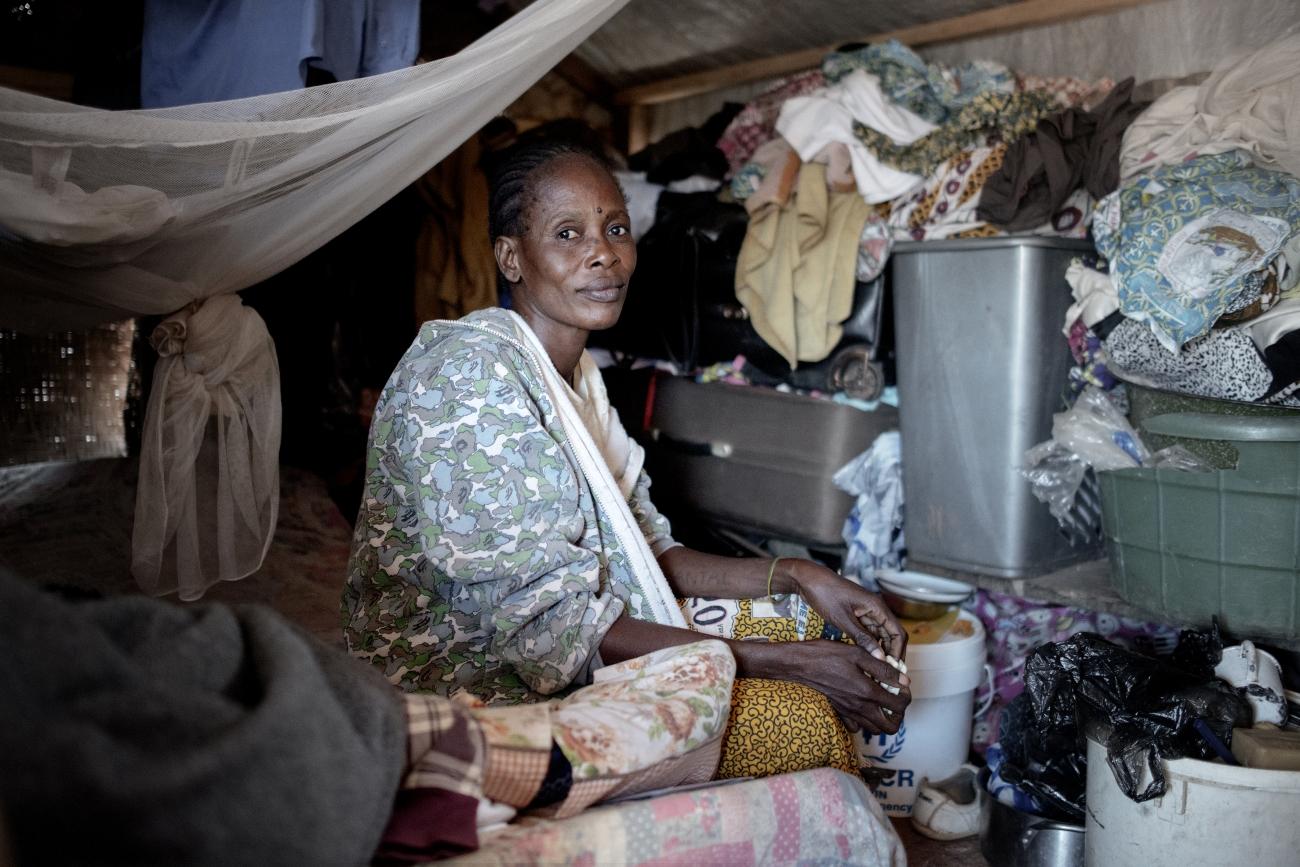Gisèle Nguenendji, la femme de Valentin, dans le camp de personnes déplacées de M’Poko à Bangui. Avec le salaire de Valentin, qui est administrateur civil, les enfants peuvent aller à l’école et à l’université, et la famille peut mener une vie meilleure que d’autres familles dans le camp, mais ce n’est toujours pas suffisant pour nourrir leurs 9 enfants et 6 petits-enfants.