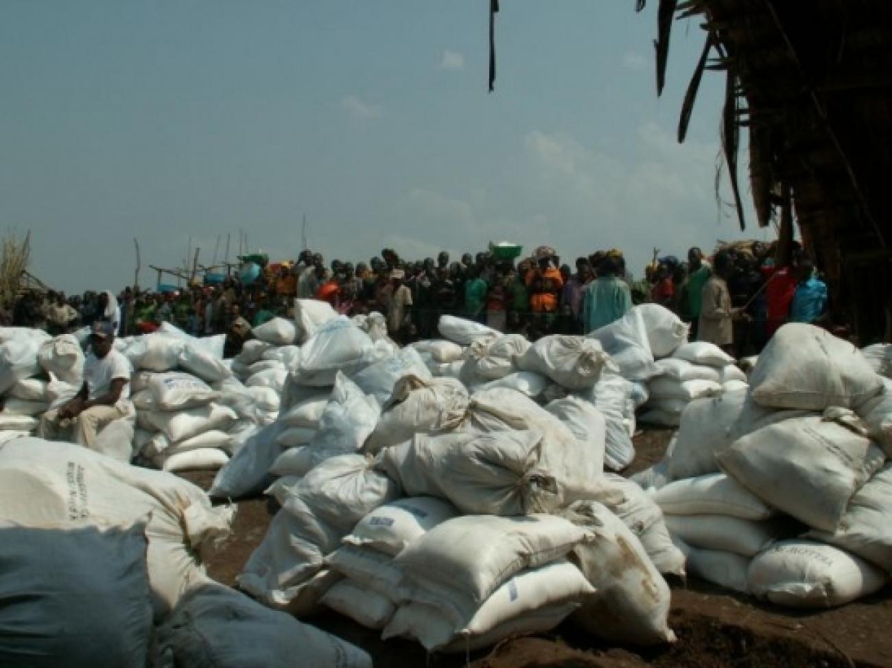 Une autre ONG s'est jointe à MSF pour secourir les personnes déplacées, vivant dans le camp de Bambu et a acheminé de la nourriture. © Jean Louis Labeyrie / MSF