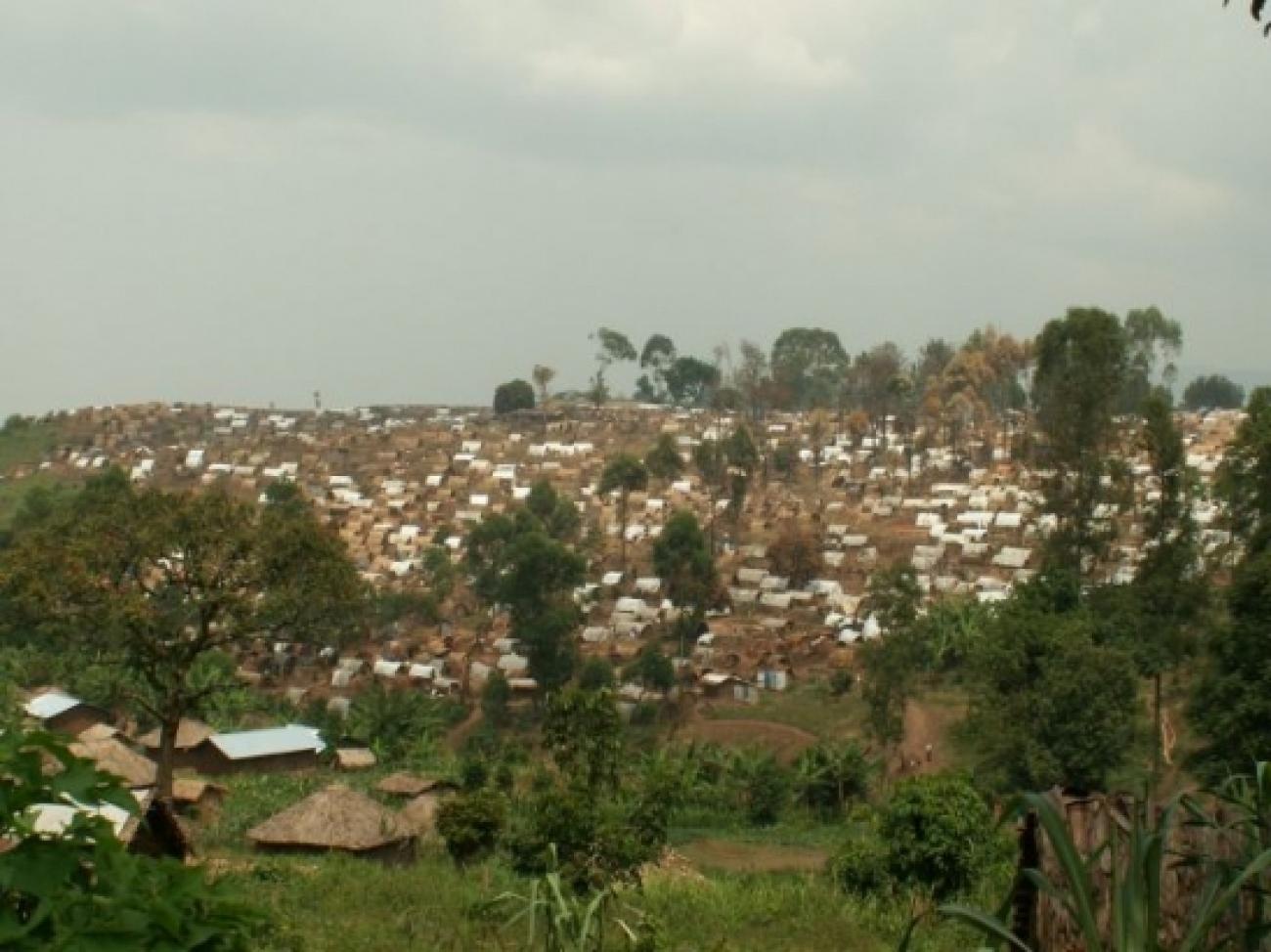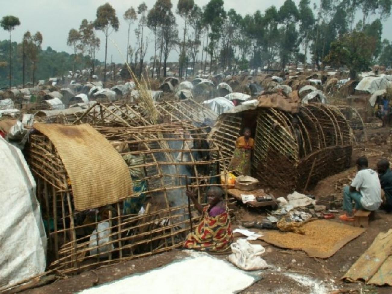 Les affrontements armés dans la province du Nord Kivu, en République démocratique du Congo provoquent d'incessants mouvements de populations. Ces personnes déplacées s'installent souvent dans des camps, comme celui-ci dans le village de Bambu. © Jean Louis Labeyrie / MSF