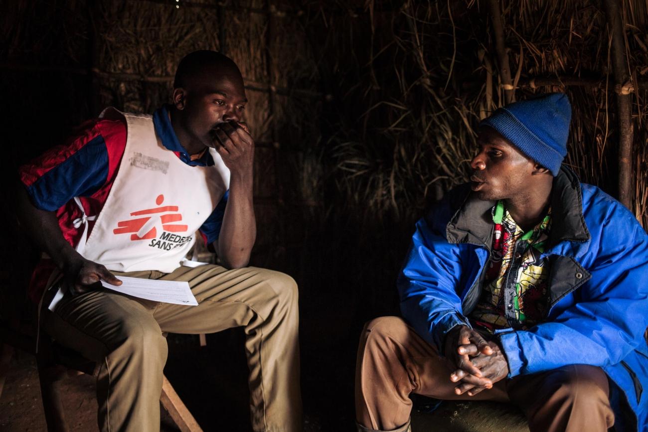 Des sites de soins communautaires ont été installés par MSF dans 19 des 24 camps de la zone de santé de Nizi. Ces sites de soins communautaires sont gérés par un membre de la communauté, identifié en amont et formé à reconnaître les maladies les plus fréquentes. Ces derniers mesurent les bras des enfants à l’aide de bracelets pour repérer la malnutrition, font des tests de dépistage rapide du paludisme, contrôlent la fièvre et la diarrhée.