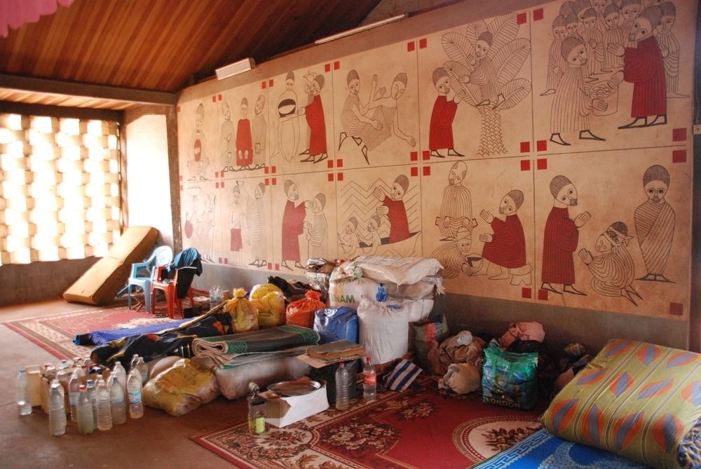 Aujourd’hui, l’enclave de Carnot compte encore 520 déplacés, pour la plupart des commerçants musulmans et leur famille. Ils ont trouvé refuge dans l’enceinte de l’église catholique en février 2014 et vivent dans des conditions d’extrême précarité depuis plus de 18 mois. Les familles sont installées à l’intérieur de l’église et dans les bâtiments annexes, leurs maigres possessions constituées d’une natte et de quelques ballots de vêtements et de nourriture. Au total, plus de 200 enfants vivent dans l’enclave et nombreux sont ceux qui ont débuté leur vie ici.