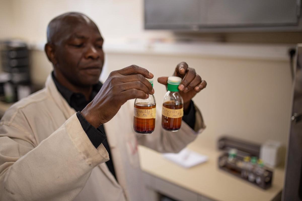 Dans un hôpital de Bangui (RCA), un responsable de laboratoire analyse des échantillons prélevés sur les patients afin de détecter la présence de bactéries résistantes.