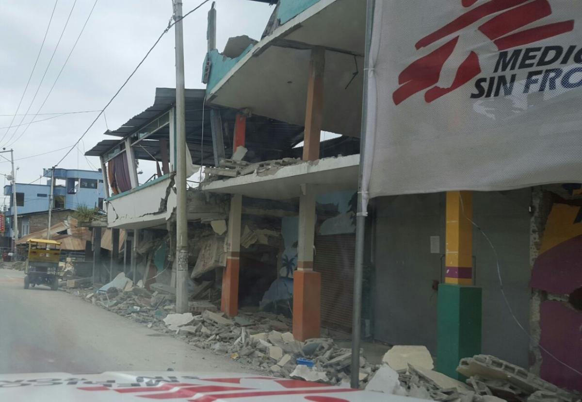 MSF gère un projet à Tumaco en Colombie, une localité très proche de la frontière équatorienne. Deux de nos équipes sont parties de là bas et ont rejoint les zones les plus touchées par le séisme. Je suis partie avec la première équipe et suis arrivée le samedi 16 avril au soir à San Lorenzo. Nous sommes ensuite descendus vers le sud pour rejoindre la province d’Esmeraldas, l’une des zones les plus endommagées par le séisme. Le 18 avril, une seconde équipe s’est rendue, en bateau, sur Pedernales, dans la province équatorienne de Manabi.