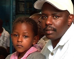 Après la mort de ma femme, je me suis rendu compte que ma fille avait un problème. Je l'ai amenée à l'hôpital, on a découvert qu'elle était positive. On m'a conseillé de venir ici pour qu'on puisse lui donner un traitement, les ARV.