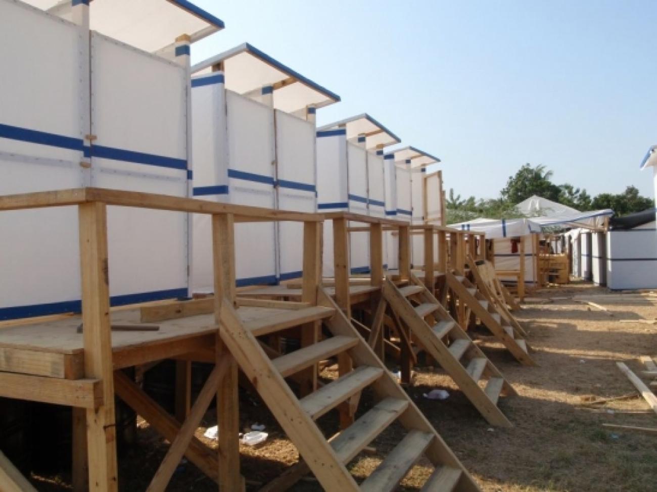 Les anciens bâtiments ne sont souvent plus utilisables, comme celui de l'hôpital MSF la Trinité. Avec l'arrivée des pluies et l'approche de la saison des ouragans (août-septembre), MSF transfère progressivement ses activités médicales en tentes vers des structures permanentes ou semi-permanentes.